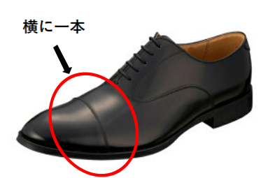 靴のデザインで、つま先に一本の横線が入っているデザインのこと