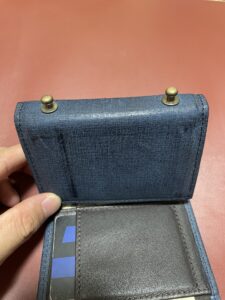 フラップのポケットにもカードを入れているので、接触する部分に跡がついてます。