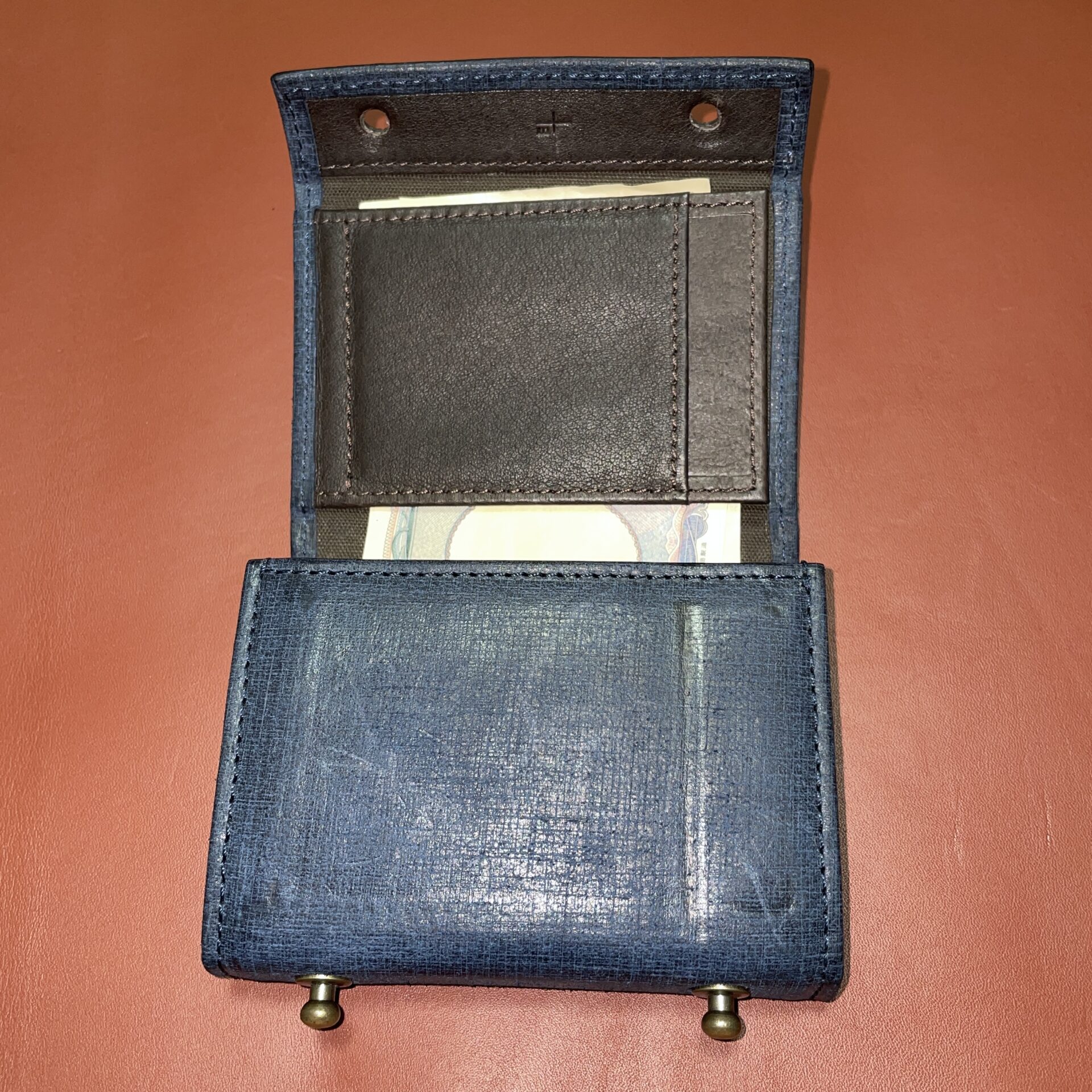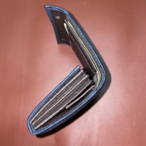 一枚の革でぐるっと巻いているので、面積も大きく、変化を楽しみやすい財布です。