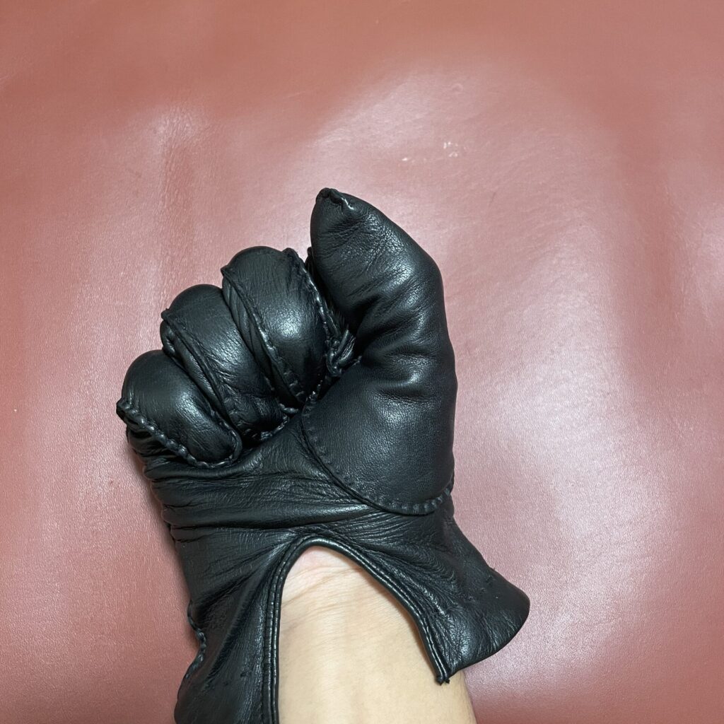 革が柔らかいので、物を握るときのツッパリ感も少なく、つけていてストレスの少ない手袋です。
