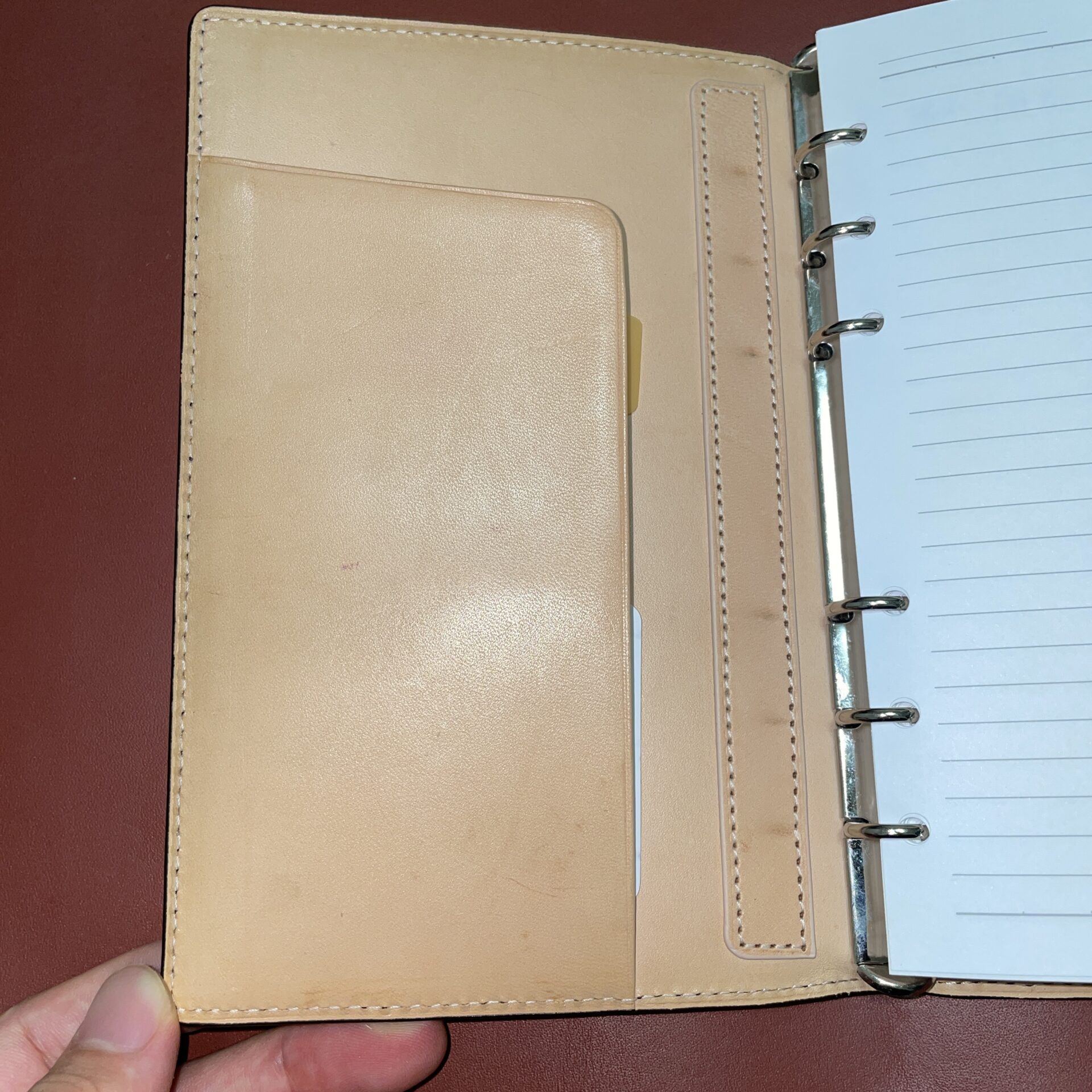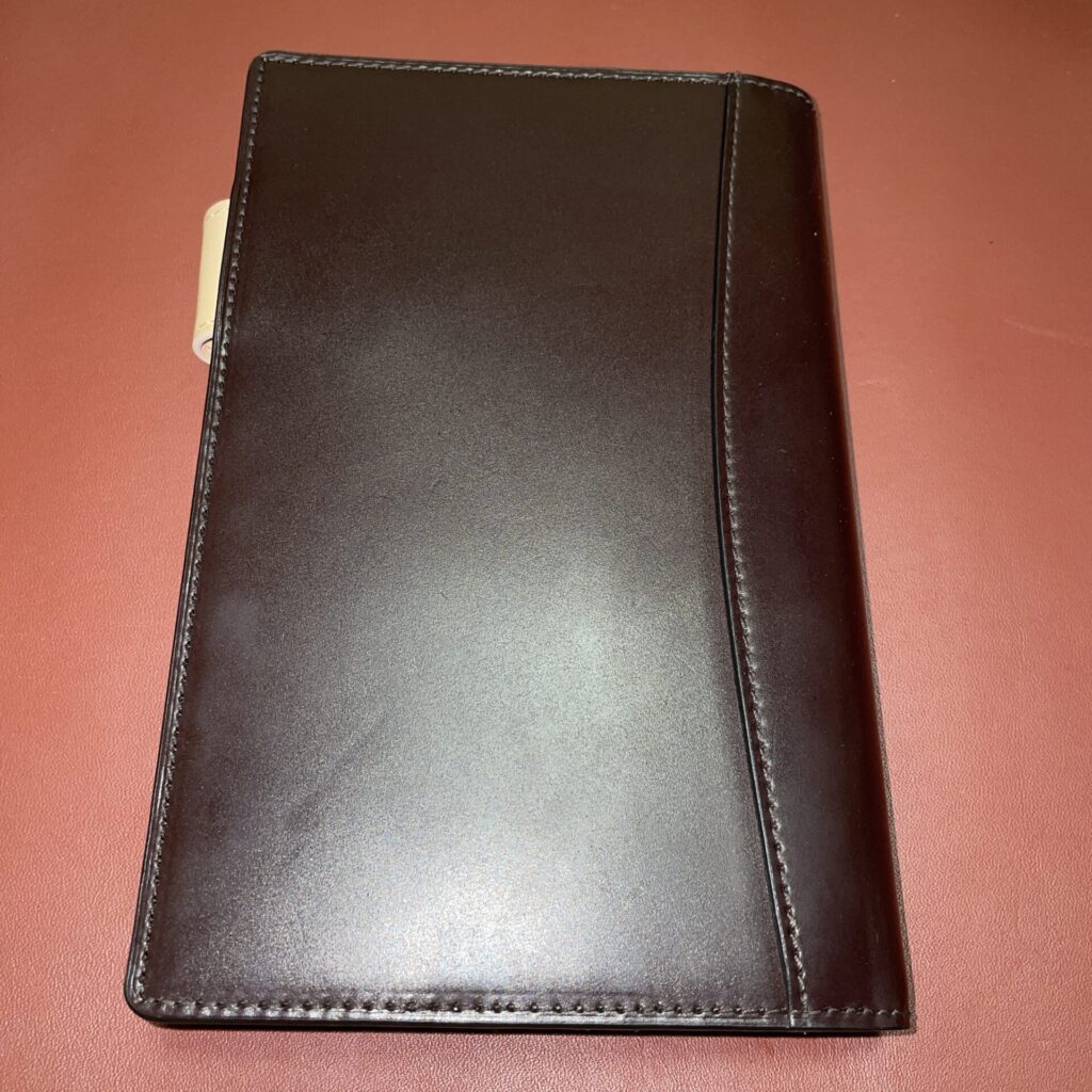 買ったもののシステム手帳って正直使う機会が少ないので、エイジングの進みが遅いです笑