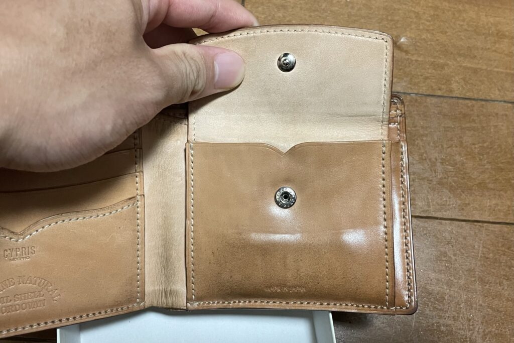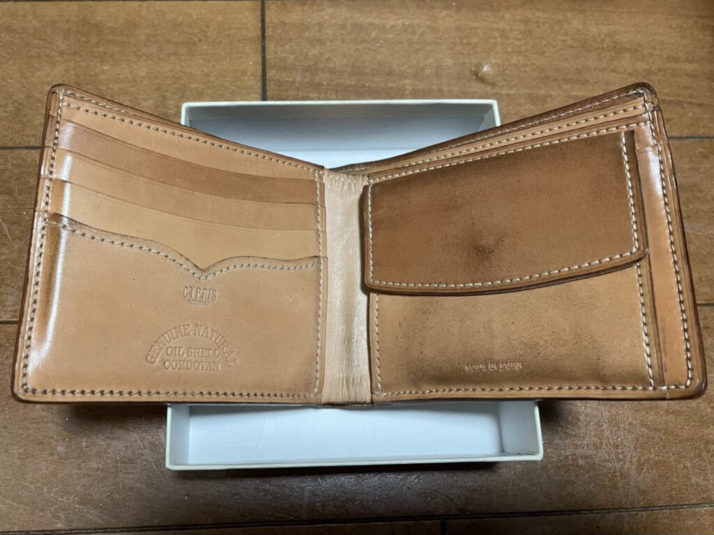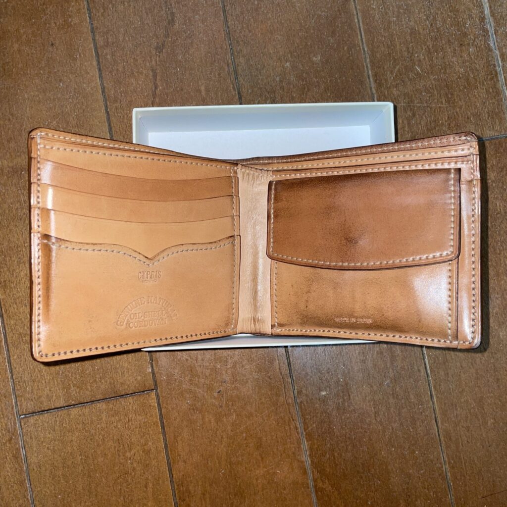 キプリスのナチュラルコードバンの財布を使い始めて2年後のエイジングレポートです。