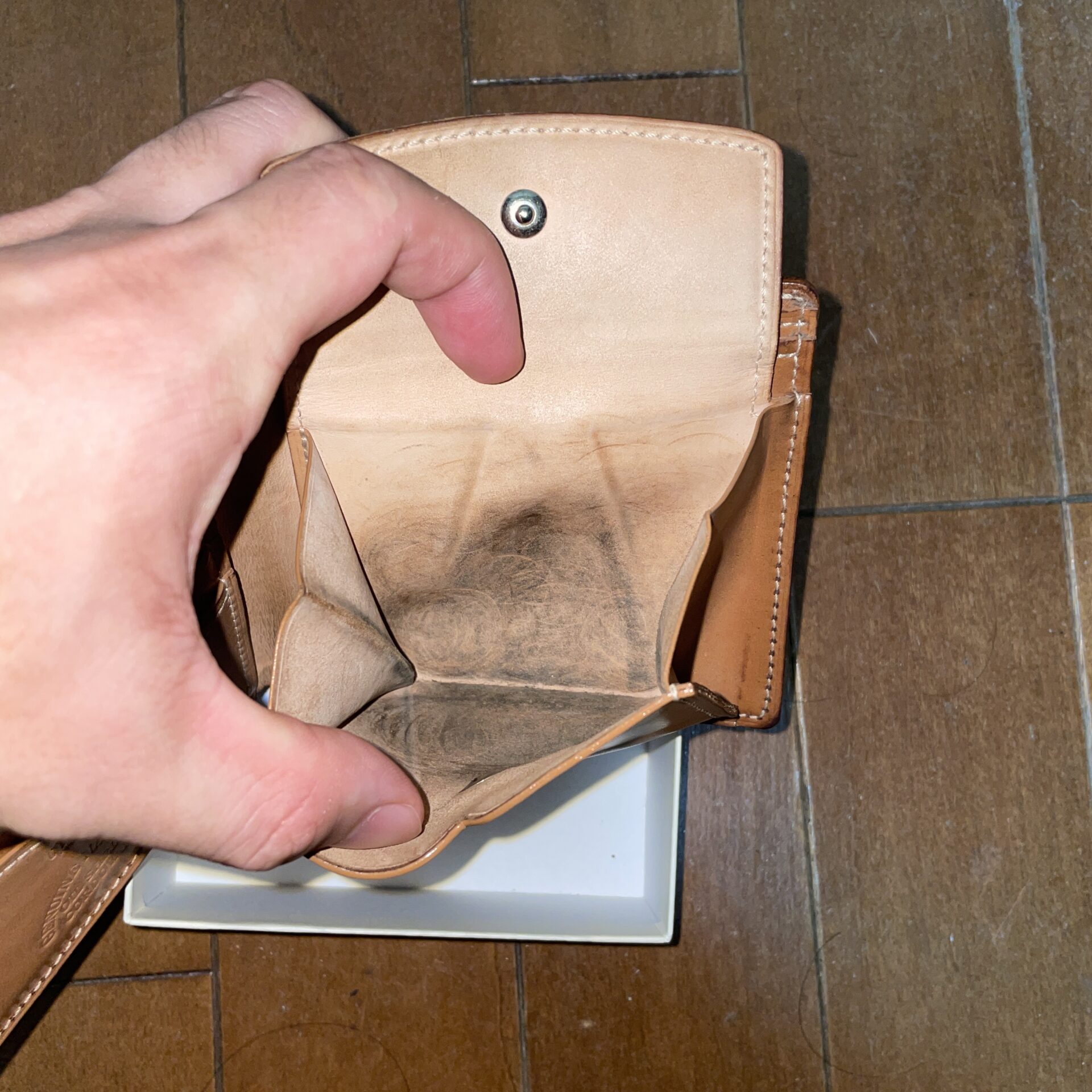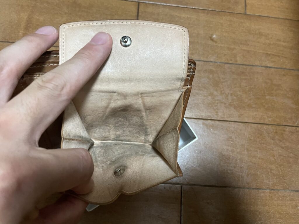 小銭入れの中は摩擦で艶が出てました笑