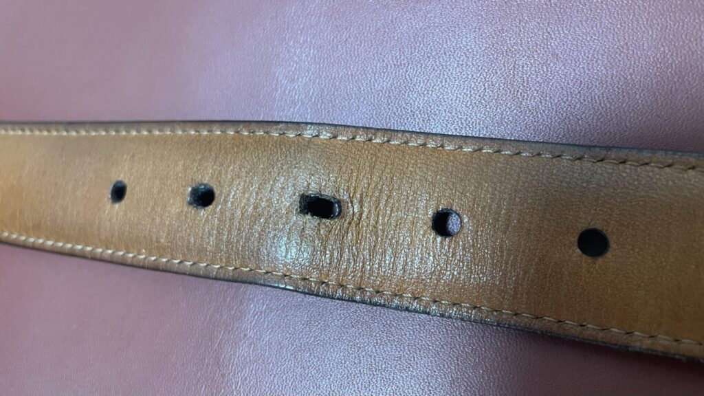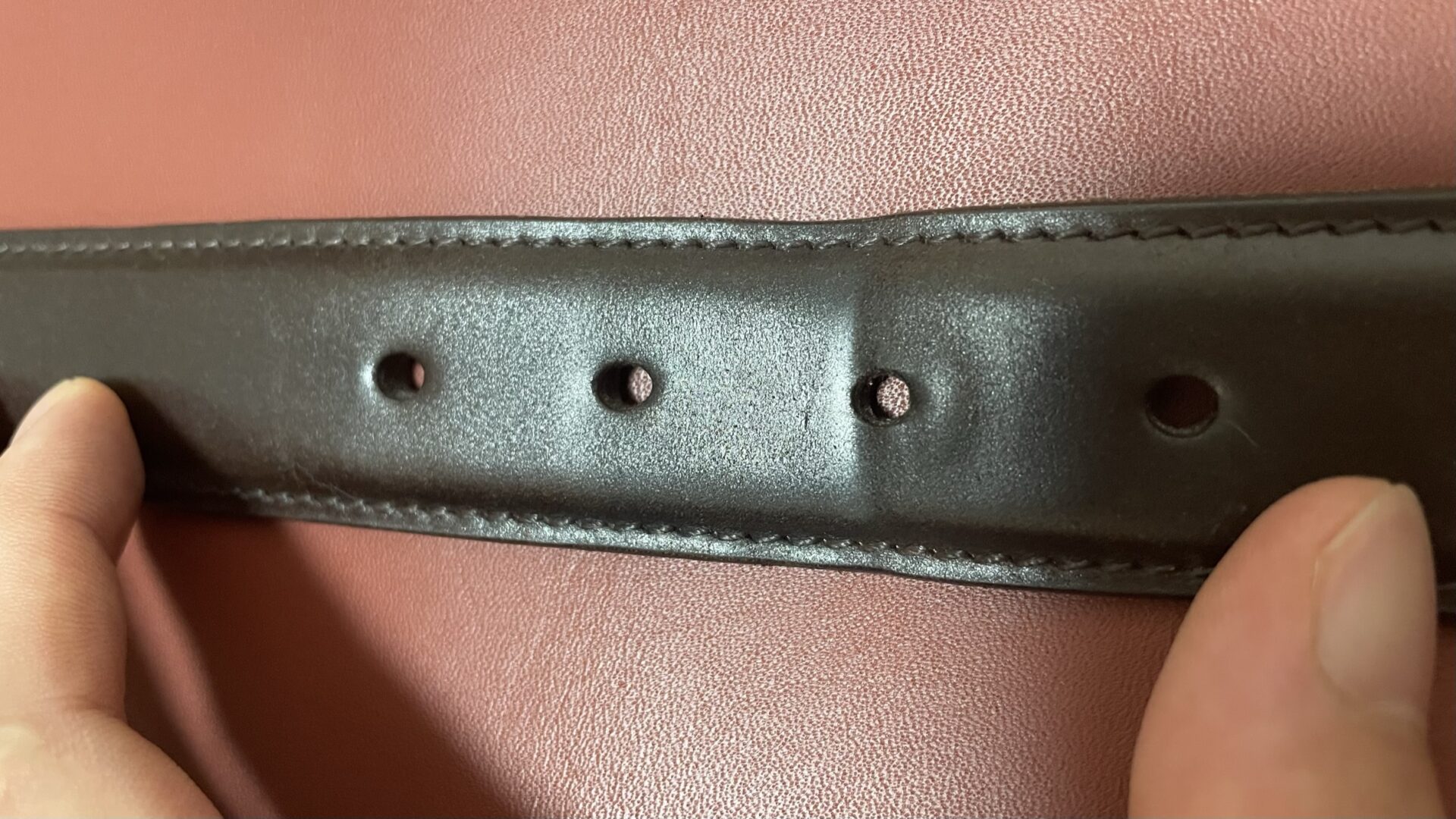 ズボンのベルト通しに当たる部分に食い込み、ひび割れなどの劣化を起こしてしまうんですが、