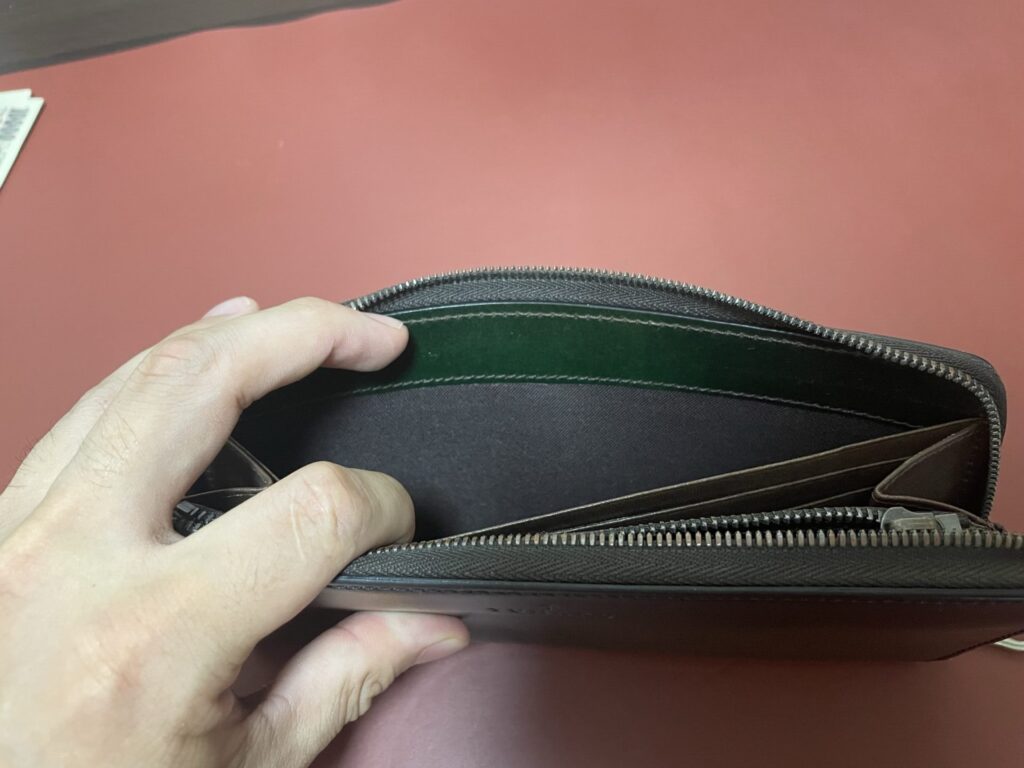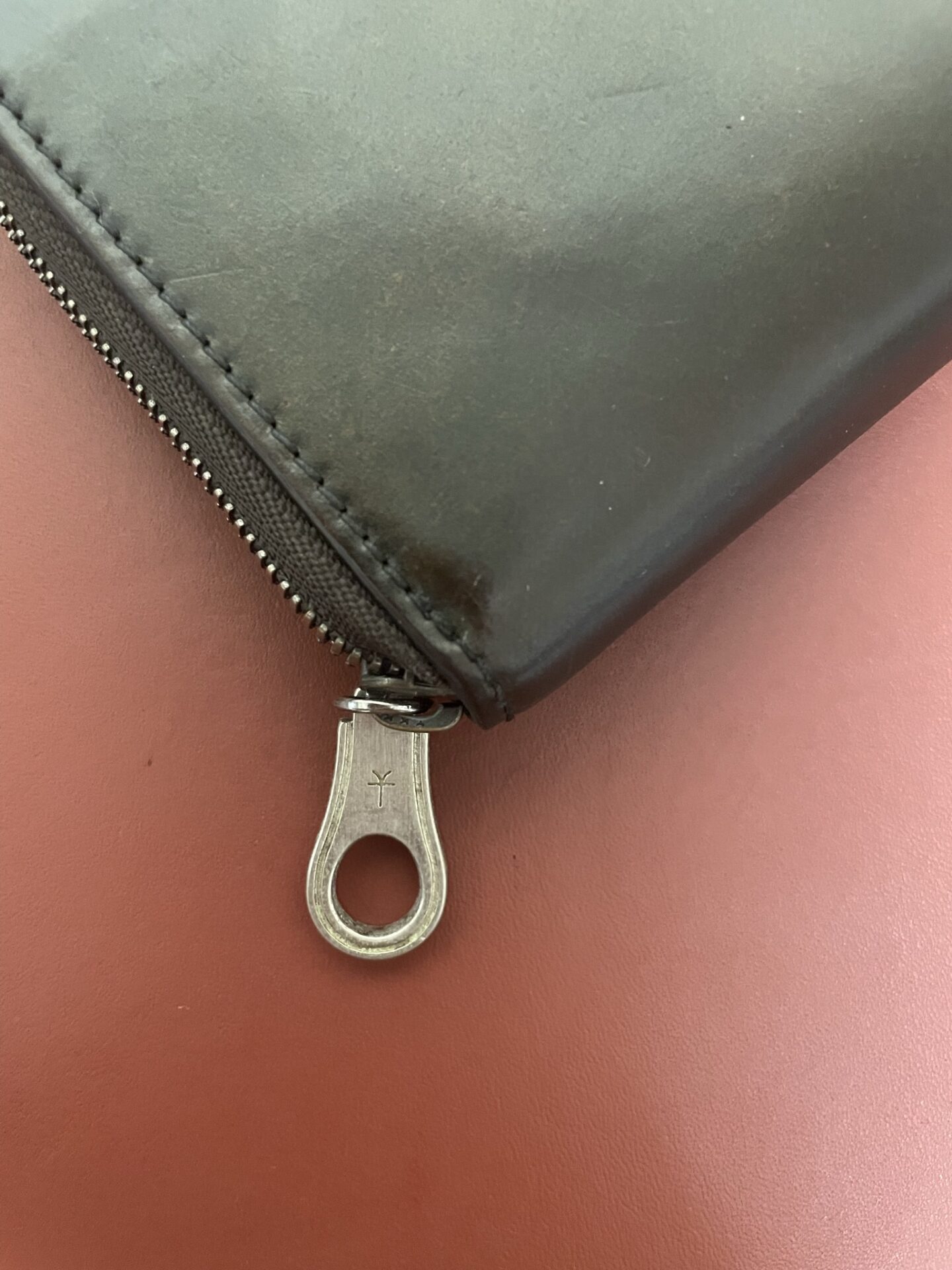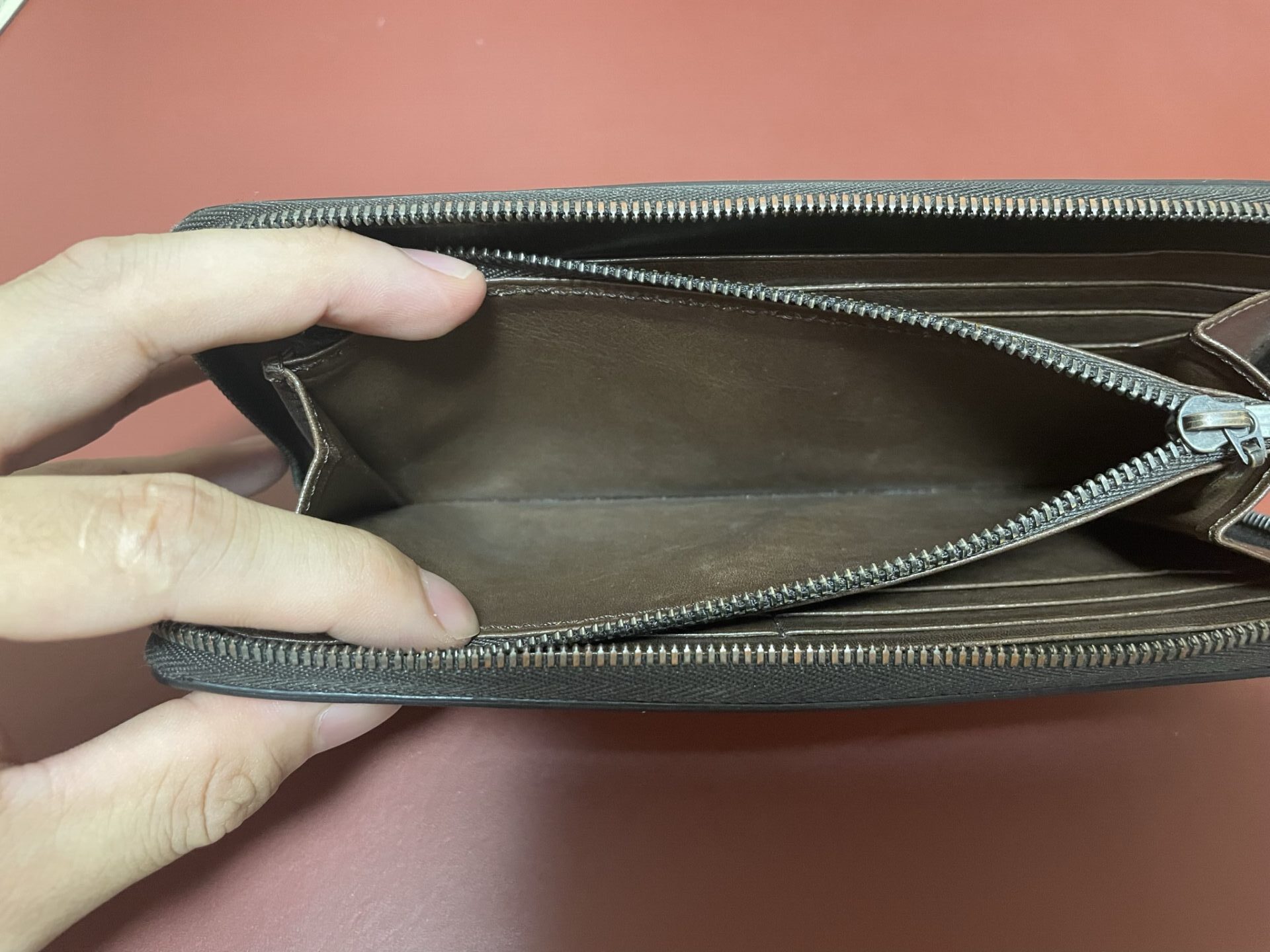 ラウンドファスナーで茶色い革なので、こんなもんだと思います。
