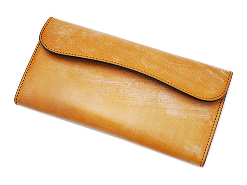 また、緩く描かれたウェーブと丸みを帯びたコバが特徴で、すべての財布に共通しています。