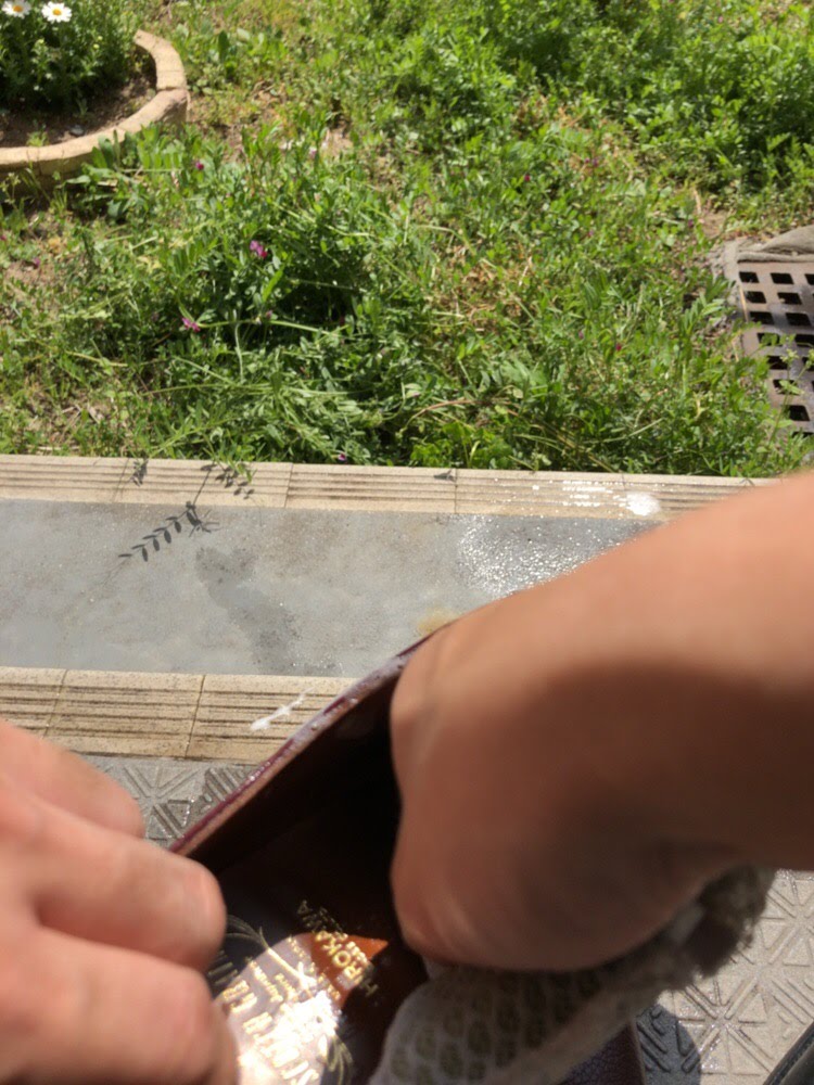 LEXOLレザークリーナーは保湿の成分もあるので、水ですすぐ必要はありません。