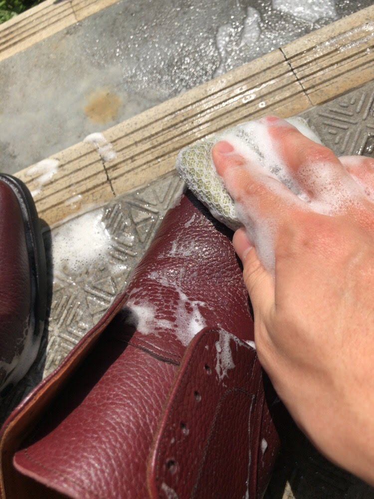 丸洗いは革の奥に入り込んだ汚れを取るためなので、表面の汚れを取るのには適していません。