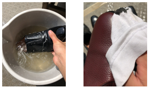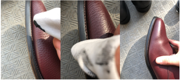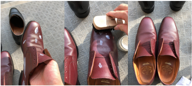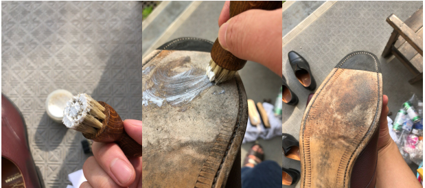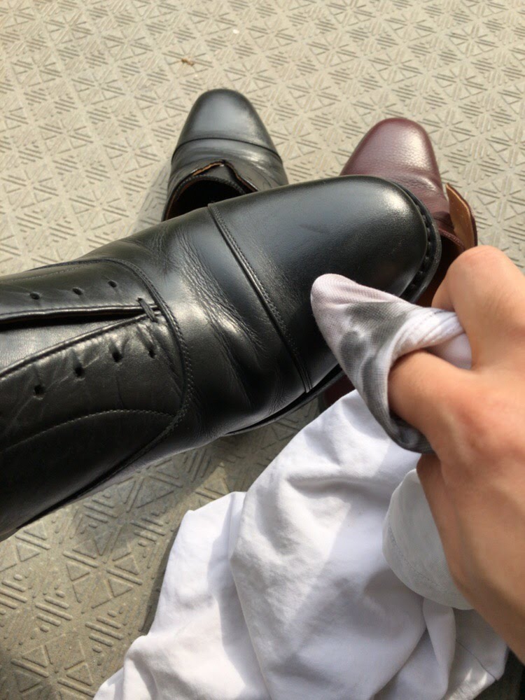 普段の靴磨きと同じように、靴の汚れを落とします。