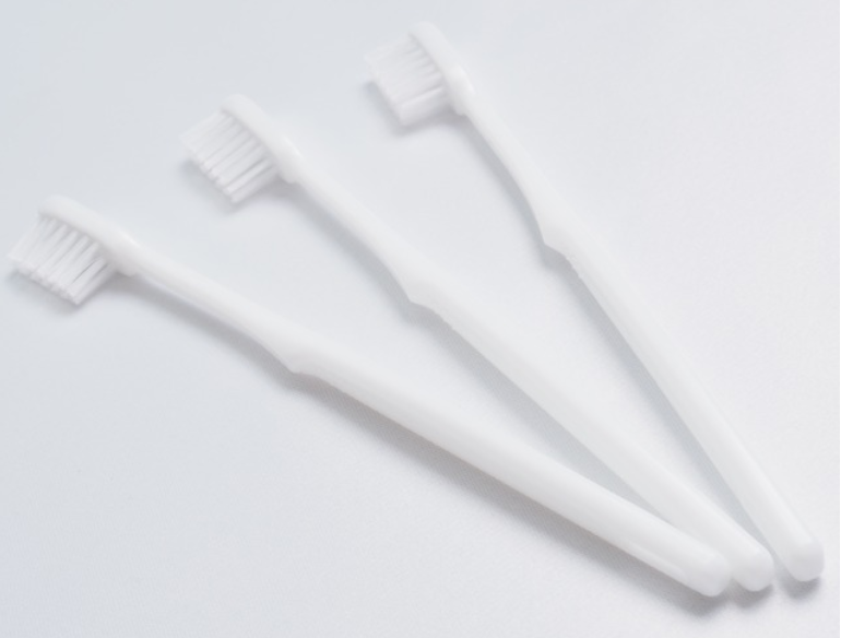 コバ周りや内側など、手が届きにくい箇所は歯ブラシを使ってこすっていきます。