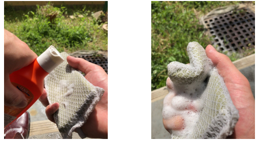 泡が減ってきたと感じたらクリーナーを足していきます。(スポンジは泡だらけの状態を保ちます)