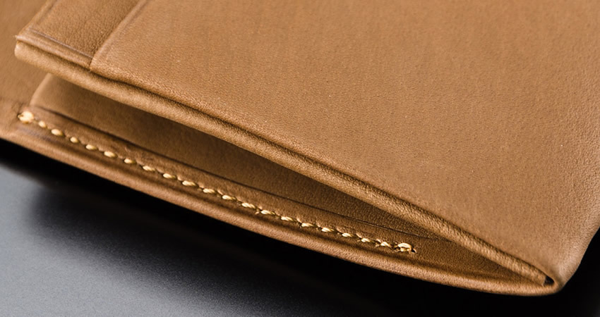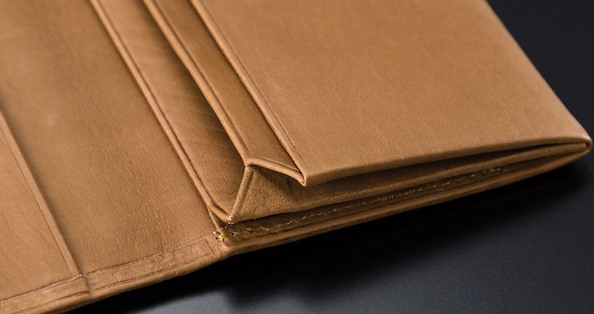 札入れや小銭入れのマチ(外側の折れ目部分)を内側ではなく、外側へおる「風琴マチ」など、日本製ならではの美しさを細部にまで拘っていて