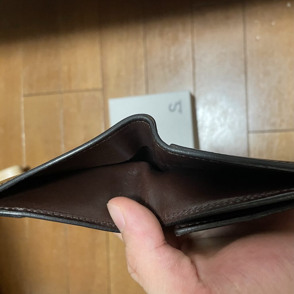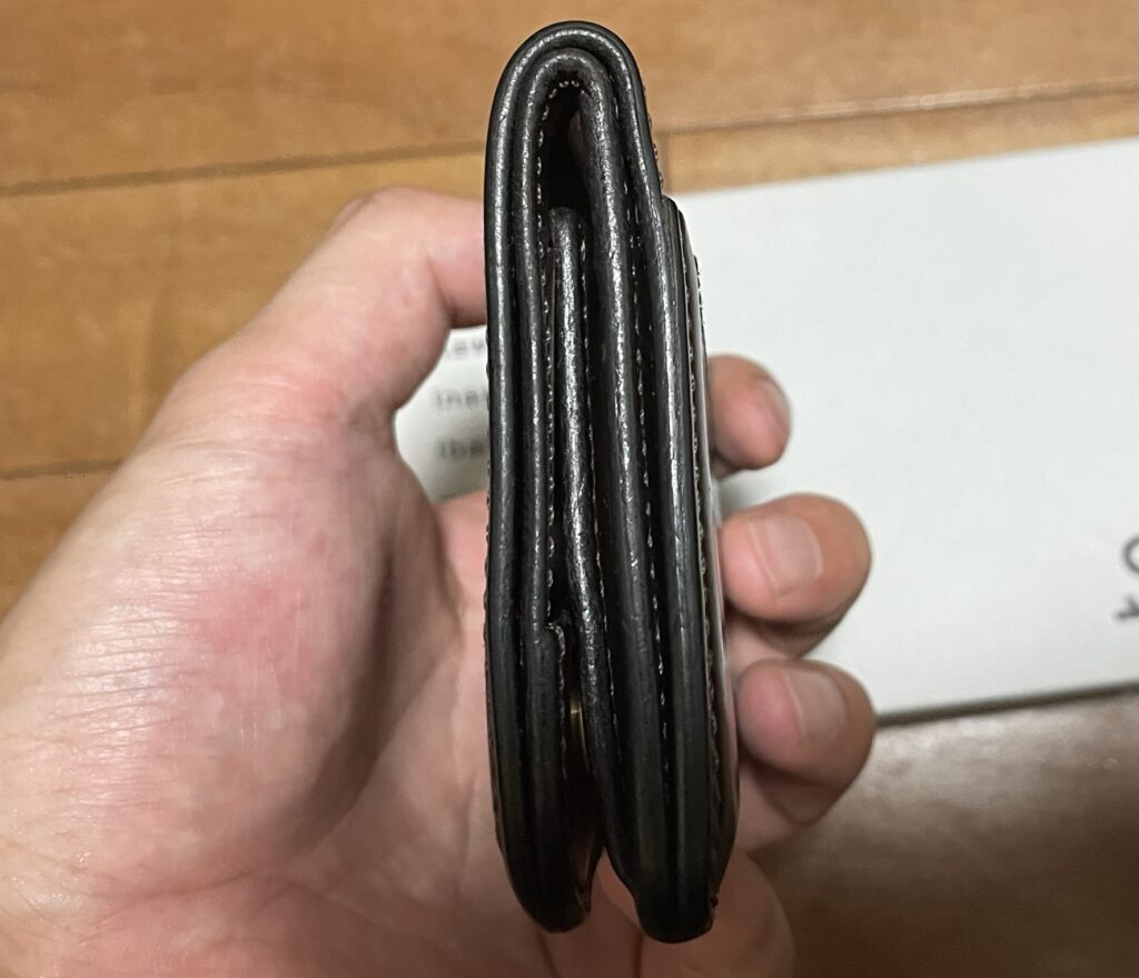 カードも「背面ポケット」に2枚「小銭入れの奥」に2枚「ボタンの裏」に1枚が限界だと思います。