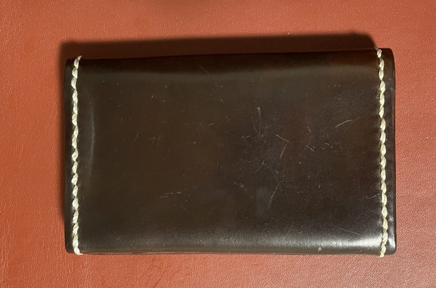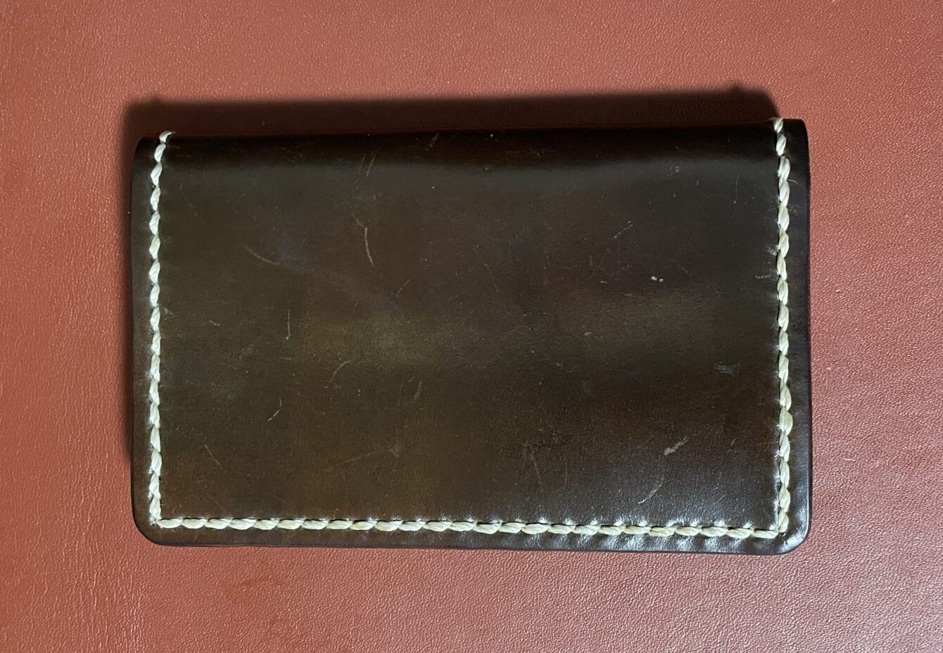 ホーウィンのシェルコードバンのアイテムはいくつか持っていますが、この名刺入れが一番安定しているというか、曇ったりもせずに使えています。