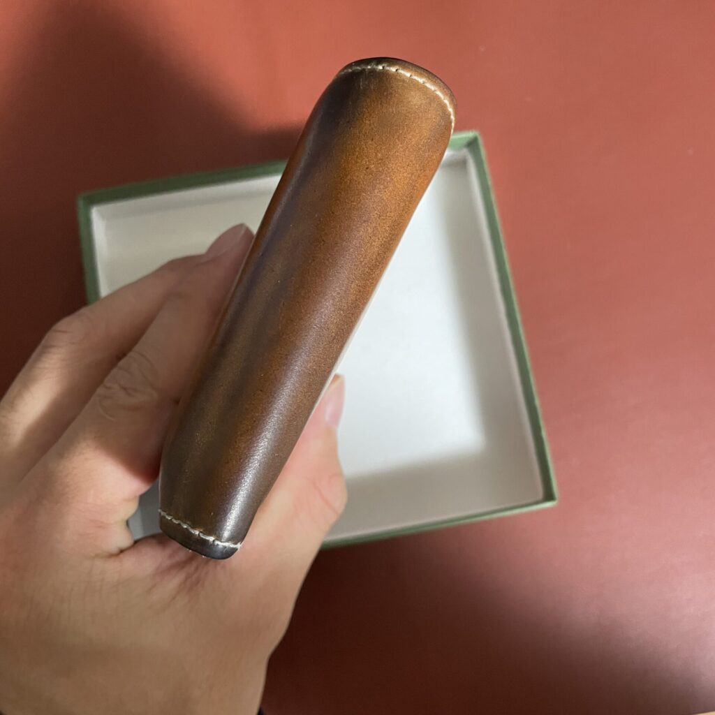 ホーウィンのシェルコードバンや、新喜皮革社(レーデルオガワ)のコードバンも所有していますが、今回紹介したナチュラルコードバンが一番扱いやすいです。