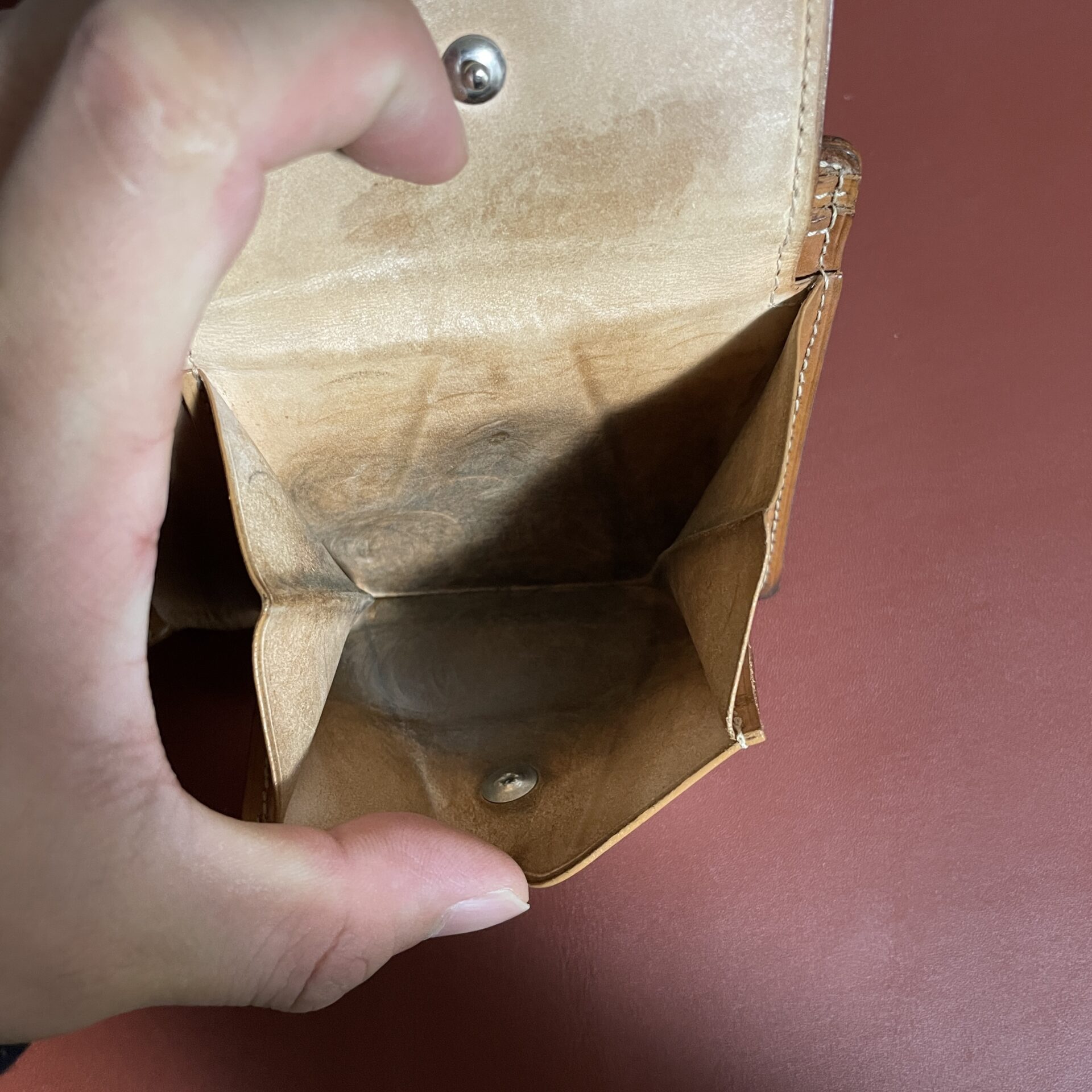 小銭入れにアタリがボタンや革が重なる部分のアタリが出て、