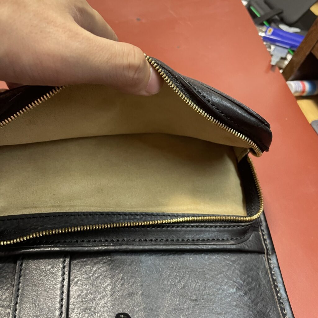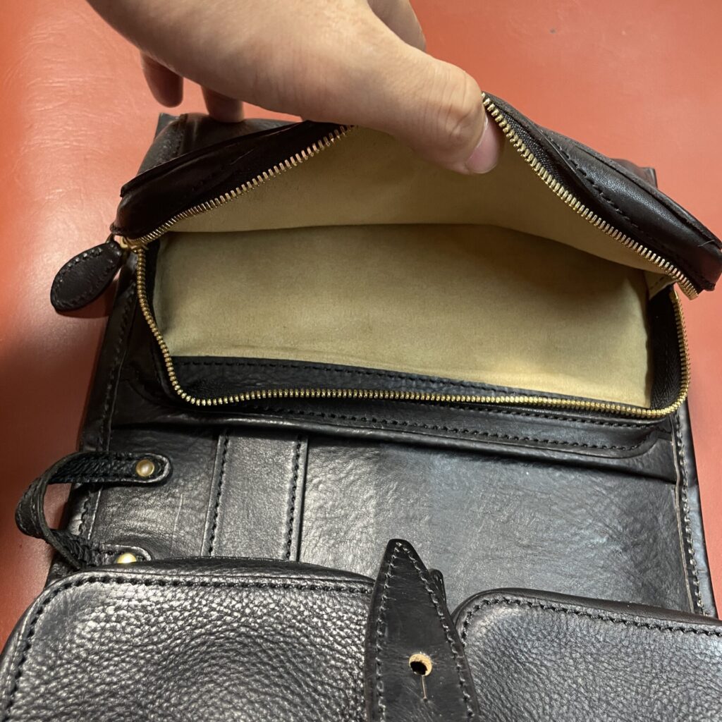 パッと見はかなりクラシックなんですが、開くと中にZIPポケットが3部屋あるかなり面白い構造をしています。