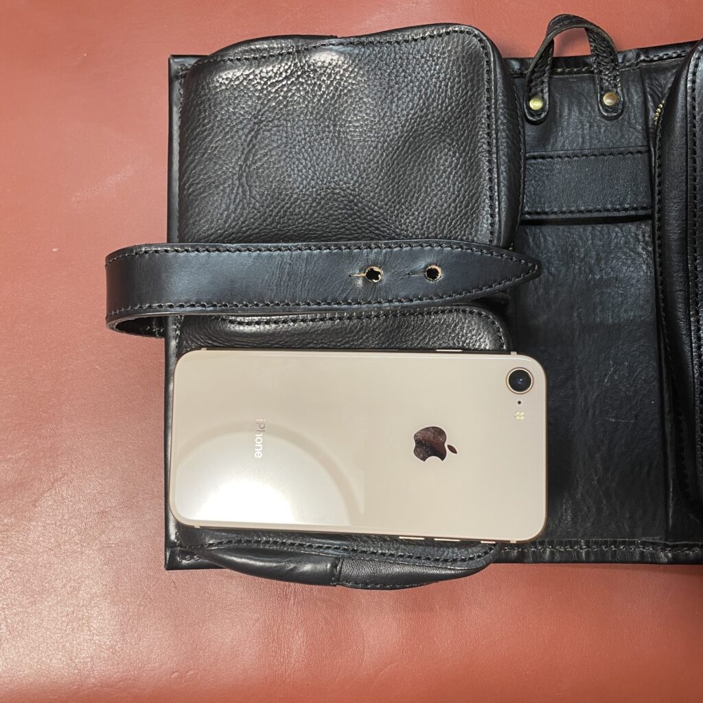 写真ではiPhoneを置いてみましたが、スマホは余裕で収まるサイズです。
