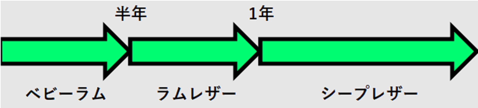 年齢ごとに名前が変わり、若い順にベビーラム、ラム、シープと呼び方が変わります。
